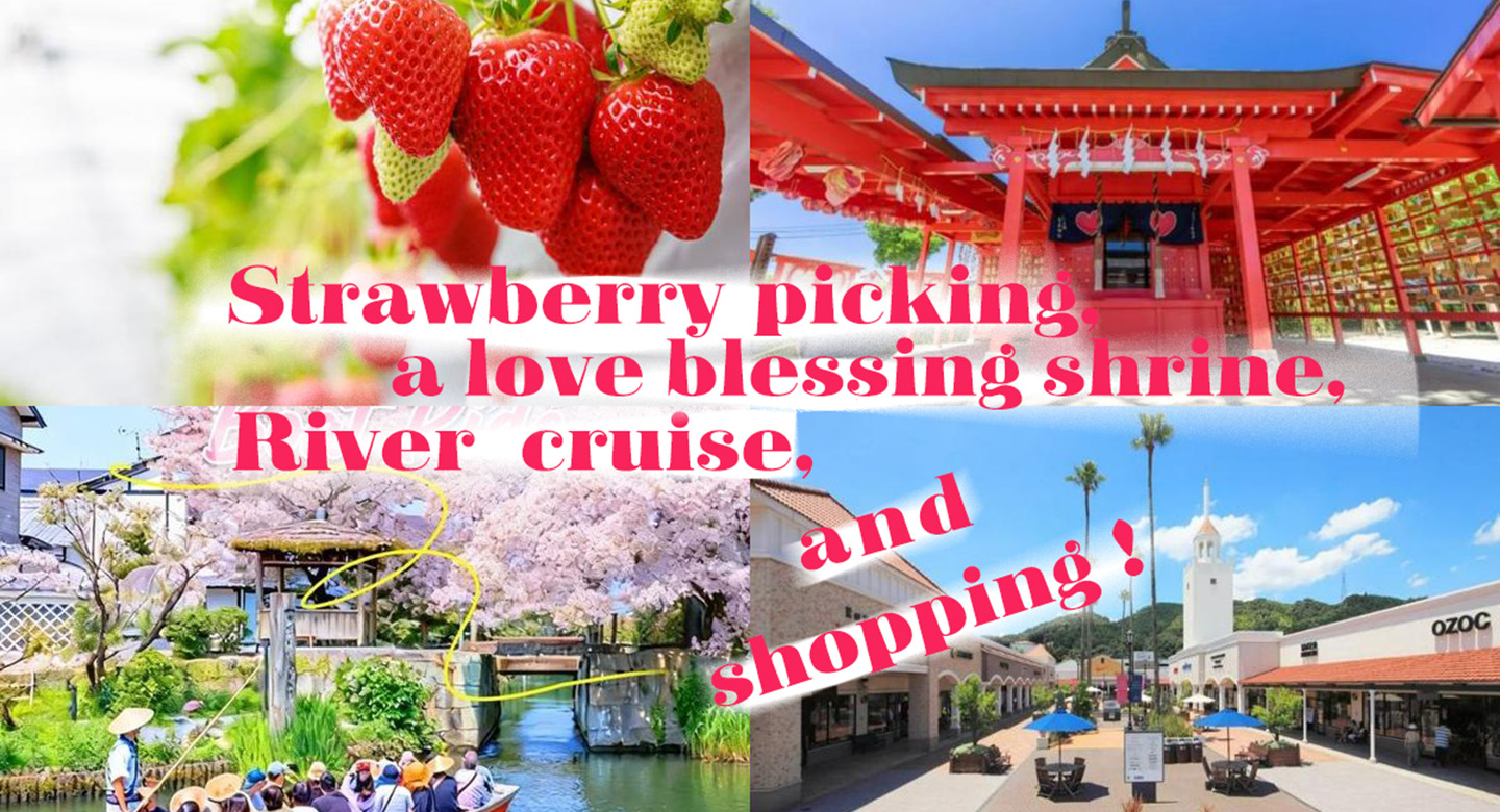 Fukuoka Day-trip bus tour [Day Trip Bus Tour] Strawberry Picking, Yanagawa River Cruise, Koiki Shrine & Tosu Outlet