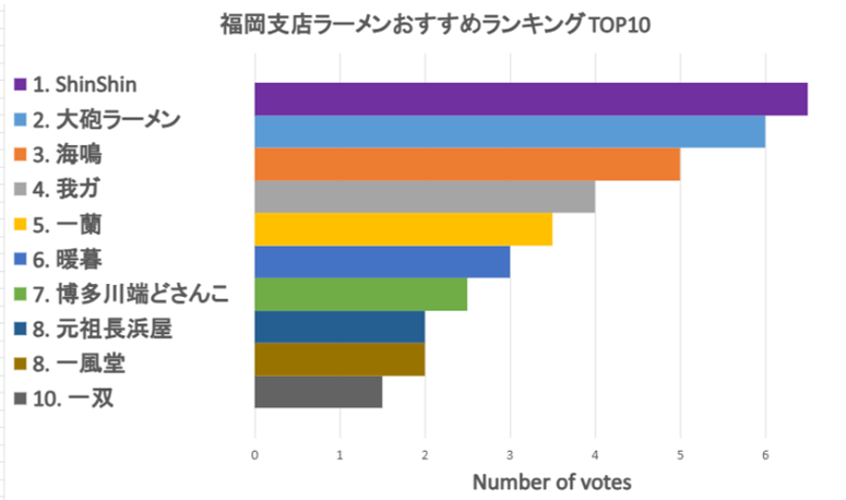 1.Hakata Ramen_ShinShin, 2.Taiho_Ramen, 3.Ramen_Unari, 4.Menya_Gaga, 5.Ichiran, 6.Ramen_Danbo, 7.HakataKawabata_Dosanko, 8.Ganso Nagahamaya, 9.Ramen_Ippudo, 10.Hakata Issou