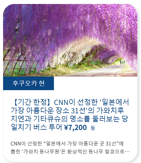 다음으로 안내할 경관은, 일년 동안, 4월 말 ~ 5월 초에만 볼 수 있는 카와치 등나무 공원 입니다.