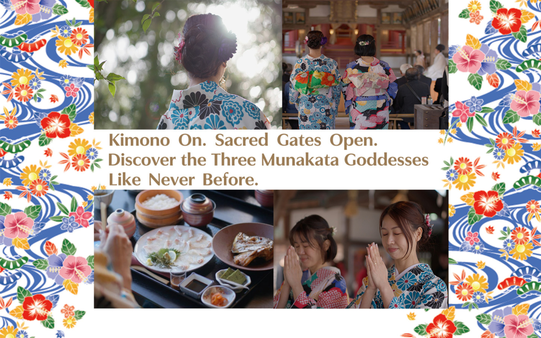 Wearing a kimono, you will visit the Munakata Three Goddesses sites